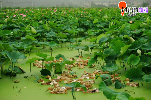 在一碧如洗的荷塘中間,一群鴨子在愉快嬉戲并不時(shí)吃一口浮萍,真是難得的好景色,吸引了不少游人觀賞拍照。(拍攝于舟山塘夾岙)