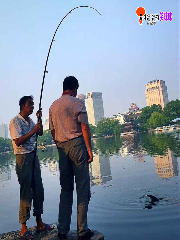 空鉤拉白鯉,月湖湖里好多五斤重的魚。2015.9.2上班前手機攝于月湖公園!