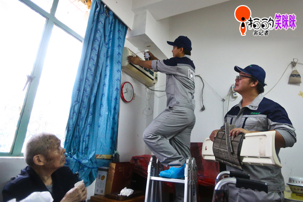 中國寧波網“i拍”記者笑瞇瞇:9月28日一早,海曙區寧波愛心養老院里,“安居易佰快修”3個80后小伙子給老人們居住的房間里的空調進行深度的清洗和高溫消毒,他們了解到該養老院的空調已經有5、6年沒有進行維護和保養,為了讓老人們有一個健康幸福的晚年,小伙子們特地聯系了寧波愛心養老院,在國慶節前夕將39臺空調全部免費消毒清洗,讓老人們度過一個舒適的國慶佳節!