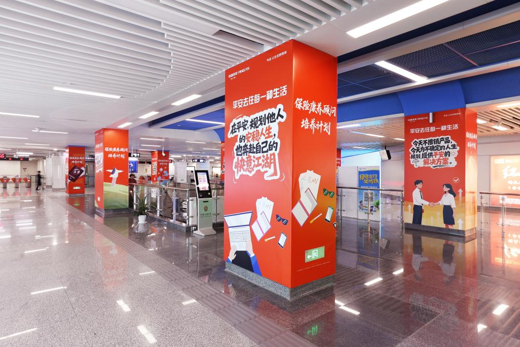 平安人壽寧波分公司將成立三十周年的慶祝,轉(zhuǎn)化為一場(chǎng)與城市和市民的互動(dòng)。廣告遍布城市核心人流節(jié)點(diǎn),形成了多維度觸點(diǎn):
