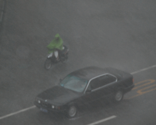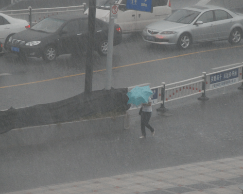 馬路上已經(jīng)有了很深的積水。路上的行人都沒有準(zhǔn)備。