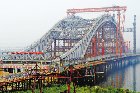 作為新三江口區域的標志性景觀,合龍后基本成型的灣頭大橋宛如一道美麗的彩虹,全身鋼結構造型既流露出濃厚的工業化氣息,又兼有典型的古典美。據悉,為便于行人休閑觀景,大橋在主橋拱腳處設置有觀景平臺供駐足停留。