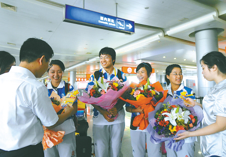 本報訊(記者龔哲明)昨日,我市6位奧運志愿者結束在北京24天的志愿服務,出色完成各項任務返回寧波。團市委、市志愿者協會負責人及志愿者的父母到機場迎接。