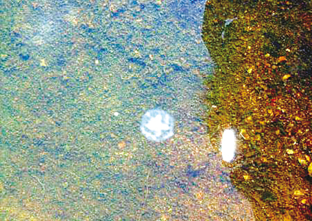 本報(bào)訊(鄭孟杰 唐海舟 羅漣浩)被列為極危動(dòng)物、號(hào)稱“水中大熊貓”的桃花水母在北侖郭巨大涂塘村下盤洋岙水庫(kù)中大量出現(xiàn)!昨天,筆者來(lái)到水庫(kù),只見一種如礦泉水瓶蓋大小、通體透明的生物隨波逐流,猶如飄落水中的瓣瓣桃花。經(jīng)當(dāng)?shù)貙<诣b定,這種生物就是極為珍稀的桃花水母。