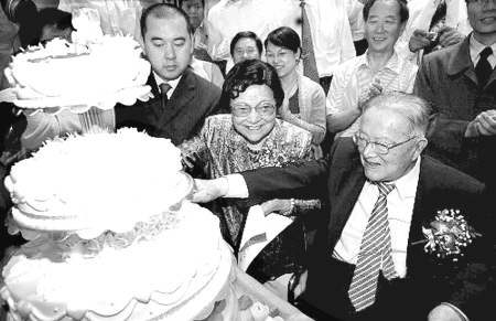 談老的夫人邱蘊芳醫生也是寧波人,是在1973年照料病中的談家楨時建立感情而成婚的。這次在復旦大學舉行的談老百歲華誕慶典中,談老的夫人聽到我們是家鄉的記者,就講起了談老的近況和他對家鄉的懷念之情。她說,談老以前無論說普通話還是上海話,包括給學生上課和接受中央電視臺的采訪,都帶著濃重的寧波口音,但現在他健康不好,已不能開口說話。“前幾天,我告訴他,大家要給他過百歲生日,問他高不高興。他拉緊我的手,點了點頭。我又跟他講,家鄉的代表也會來參加。我看到他的眼皮動了幾下,臉上露出了笑容。”談夫人說,談老始終忘不了自己是寧波人,對寧波發展很關心,報紙上有寧波的消息,他都仔細看。
