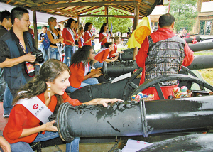 象山影視城因?yàn)樵?jīng)拍攝過電視連續(xù)劇《神雕俠侶》而名聲大噪。佳麗們下了大巴后,剛在人造榕樹林里合完影,就跑進(jìn)“活死人墓”中體驗(yàn)了一回“驚魂”,但佳麗們并沒有被嚇倒,勇敢的她們還跨上古大炮,當(dāng)了一回“美女炮兵”。