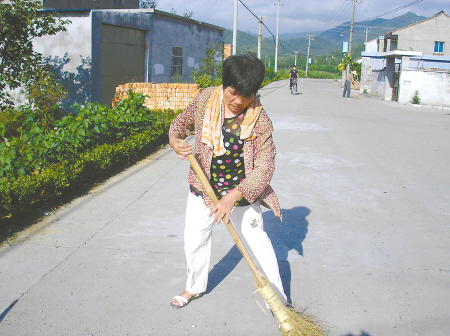 路修好了,邱菊娥把它當成自己的孩子一樣,每天去打掃、養護,風雨無阻。每天從自然村河盡開始清掃,東到山下莊路口,南至四明山村口,西至深溪村口,總計有2公里多。而且逢元旦、春節等節假日,她還早上、午后、傍晚一天掃三次。每天掃完路,邱菊娥就拖著疲倦的身子回家再繼續編草帽,她用編草帽賺來的錢買衛生工具,還要靠這個來糊口。