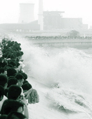 。玻埃埃钢袊鴩H錢江(海寧)觀潮節15日晚在浙江省海寧市鹽官觀潮景區開幕,記者從觀潮節上了解到,2008年錢塘潮涌為近5年來最高,是因為梅雨季節雨水充足等原因,給形成大潮提供了有利的條件。