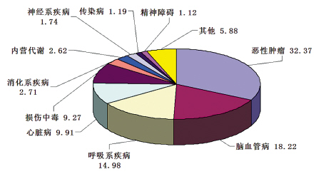 從8年前開始,腦血管病已取代呼吸系統(tǒng)疾病上升為死因順位第二位。近兩年來,心臟病一直居于死因順位第四位。