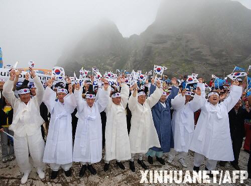 7月14日,大批韓國人在獨島(日本稱“竹島”)手舉國旗抗議。韓國外交通商部發(fā)言人文太暎當(dāng)日發(fā)表聲明,強烈抗議日本在當(dāng)天公布的中學(xué)教科書指導(dǎo)手冊中將獨島(日本稱“竹島”)表述為日本領(lǐng)土,并要求日本立即對有關(guān)內(nèi)容進(jìn)行修正。韓國外交通商部將采取召回韓國駐日本大使和召見日本駐韓國大使這兩項外交措施,就此問題向日本政府表示強烈抗議。 新華社/法新