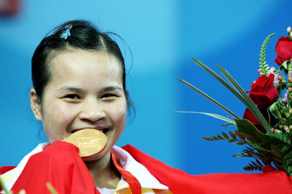 8月9日,2008年北京奧運女舉48公斤級比賽結束。陳燮霞為中國摘得首金。圖為陳燮霞。 |