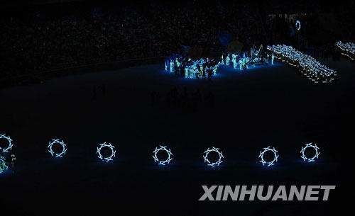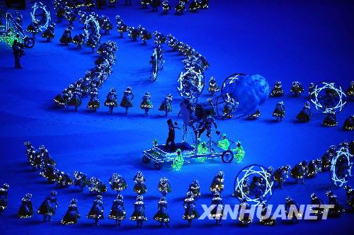8月24日晚,第29屆夏季奧林匹克運動會閉幕式在北京國家體育場——“鳥巢”舉行。這是閉幕式上的表演。 新華社記者郭大岳攝
