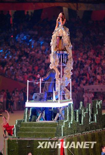 8月24日晚,第29屆夏季奧林匹克運動會閉幕式在北京國家體育場——“鳥巢”舉行。這是歌手利昂娜·劉易斯(上)在倫敦巴士上演唱。新華社記者楊磊攝 |