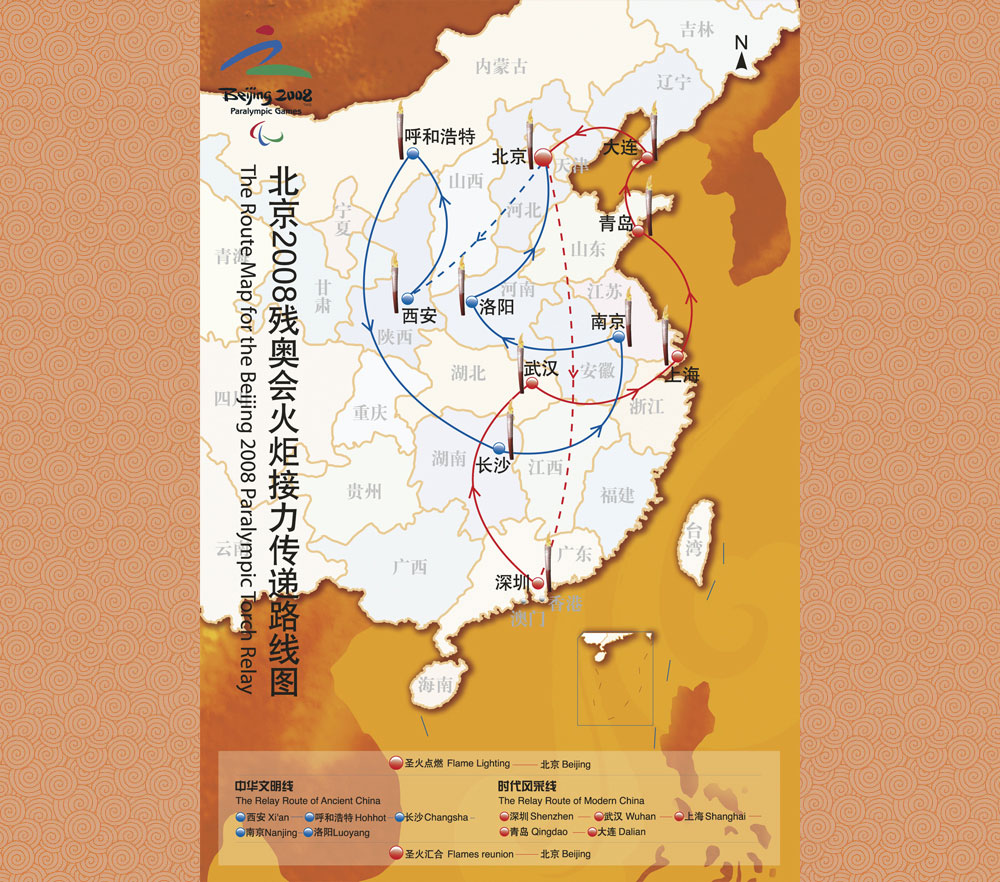 圣火盆的設計以中國傳統的“鼎”和北京殘奧會核心圖形“祥云”為設計元素