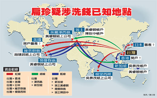 臺媒曝陳水扁家洗錢路線圖 (臺灣聯合報圖) 中新網8月30日電 據臺灣《聯合報》報道,臺灣“最高檢“特偵組追查陳水扁家庭海外密帳,發現陳水扁家的資金,曾在臺灣以外至少四大洲的十個國家或地區流轉,包括被視為洗錢天堂的英屬開曼群島、澤西島等地,金額疑超過十億元(新臺幣,下同);檢方認為陳水扁家在日本、美國也有資產,正過濾、查證相關情資。 隨著越來越多扁家海外資金訊息曝光,陳水扁、吳淑珍辯稱瑞士的兩千一百萬美元是四次選舉結余款,以及全都由吳淑珍一人掌控,只用哥哥吳景茂、媳婦黃睿靚兩個人頭戶的說法,檢方認為并非實情。 特偵組追查扁家海外賬戶,發現除了新加坡匯到瑞士的兩千一百萬美元、澤西島匯到新加坡的一千五百多萬美元,扁家在日本、美國、甚至香港等地也可能有密帳,甚至置產等,未曝光金額可能更驚人。 檢方發現二00六年底扁家海外密帳情資首度被通報傳回臺灣內后,陳致中就頻繁赴日本,加上許多情資顯示扁家與日本關系密切,特偵組最近鎖定吳淑珍人頭戶追查相關資金進入日本后的流向,希望進一步取得扁家涉嫌洗錢的證據。 對于海外資金,扁家如今口徑一致說瑞士的七億元是選舉結余款,不過到目前為止沒有任何證據可以左證。辦案人員形容扁家的說法“漏洞百出”;而且吳景茂聲稱只替吳淑珍從臺灣匯出七千萬元到新加坡,其余資金是否從臺灣匯出,也很可疑。 至于澤西島的一千五百多萬美元,經查后來輾轉進入新加坡,但澤西島的資金來源從何而來,特偵組正循司法互助積極厘清。 陳水扁于七月二十四日為“國務機要費“案赴特偵組應訊時,因陳水扁表示身體不適無法久坐,檢察官還有許多疑點未問,檢方對陳水扁發出傳票,原本要求他今天再度到案說明。 不過,由于綠營的830游行路線今天會經過特偵組門口,昨天更有人刻意在電視政論節目中放出陳水扁將出庭應訊的消息,特偵組基于維安考慮,昨晚緊急通知陳水扁取消今天的傳訊。 |