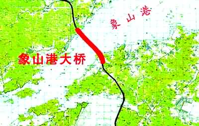 象山港大橋及接線工程起自寧波繞城公路云龍互通,接寧波繞城公路東段,向南經鄞州區櫟斜、管江、里蔡,于山巖嶺以橋梁方式跨越象山灣,經象山縣小蔚莊、大斜橋、黃避岙、白墩港、洋北,止于戴港,暫接省道38線,遠期接規劃建設的沿海高速公路象山至臺州段,全長約47公里,其中跨海大橋長約6.75公里,推薦采用雙塔雙索面鋼箱梁斜拉橋橋型;北接線(鄞州段)長25.09公里,南接線(象山段)長15.08公里;共有隧道10座,長約7.7公里;特大橋18座,長約11.7公里;互通立交6處(包括云龍互通),服務區1處。本工程項目按雙向四車道高速公路設計,設計時速100公里/小時,項目總投資約70億元,計劃建設工期四年。