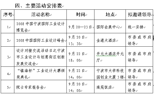 由2008中國國際工業設計展覽會、第三屆“鎮海杯”國際工業設計大賽、設計對接交流活動日、院士專家企業行等四項內容組成。