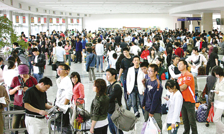 昨天下午,寧波汽車中心站候車大廳旅客如潮。據介紹,截至下午5時,該車站已發送旅客2.15萬人次,比去年同期增長25%。(胡建華 李 韜 王曲晶 攝)