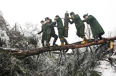 2008年年初,中國南方大部分地區和西北地區東部出現了罕見的雨雪、冰凍天氣。大雪造成安徽、江西、河南、湖南、貴州等。▍^、市)受災,交通網絡大面積癱瘓。時值春節前夕,趕著回家過年的人歸途受阻……