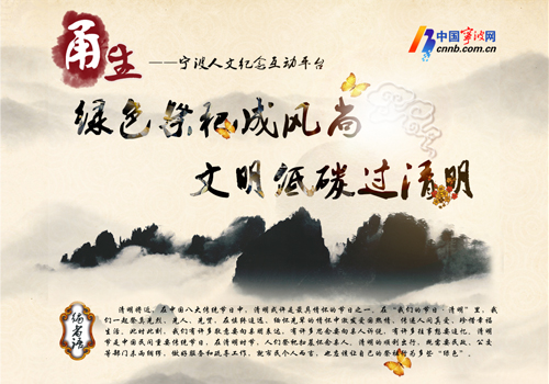 中國寧波網4月10日訊(記者祝欣祎)中國寧波網推出的國內首個人文紀念互動平臺《甬生》,自4月1日上線以來,短短7天時間推出一系列上線活動,在寧波乃至全國引起強烈反響。《寧波日報》、《寧波晚報》、《東南商報》等媒體紛紛轉載報道并發表評論:“甬生”是中國首個網上人文紀念互動平臺,告別傳統的思念方式,充分體現綠色祭祀的科學理念……上線期間“甬生”日均訪問量達5萬人次,吸引了大量網友互動,并將“甬生”征文活動(活動地址:http://m.nemkj.com/ys/system/2015/04/07/008295082.shtml)再一次推向高潮。