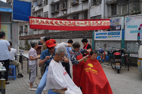 6月19日,西門街道新芝社區舉行“感黨恩、送溫暖”七一黨員志愿者活動。社區黨員志愿者們發揮自身特長和優勢,為居民群眾了提供理發、量血壓、法律咨詢、職業介紹、計劃生育政策宣傳等多項服務。受服務的社區居民紛紛豎起了大拇指。這次活動不僅拉近社區黨員與居民的距離,增進聯系和互動,同時也充分發揮黨員的先鋒模范作用。各位黨員志愿者在服務群眾中喜迎黨的生日。