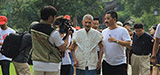 抗戰老兵與青少年同游象山影視城講抗戰故事